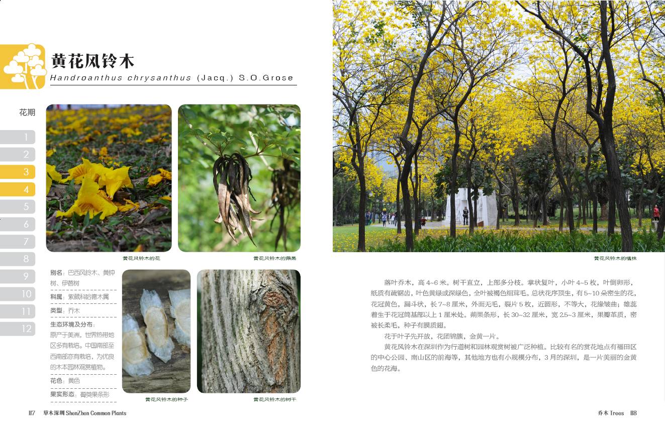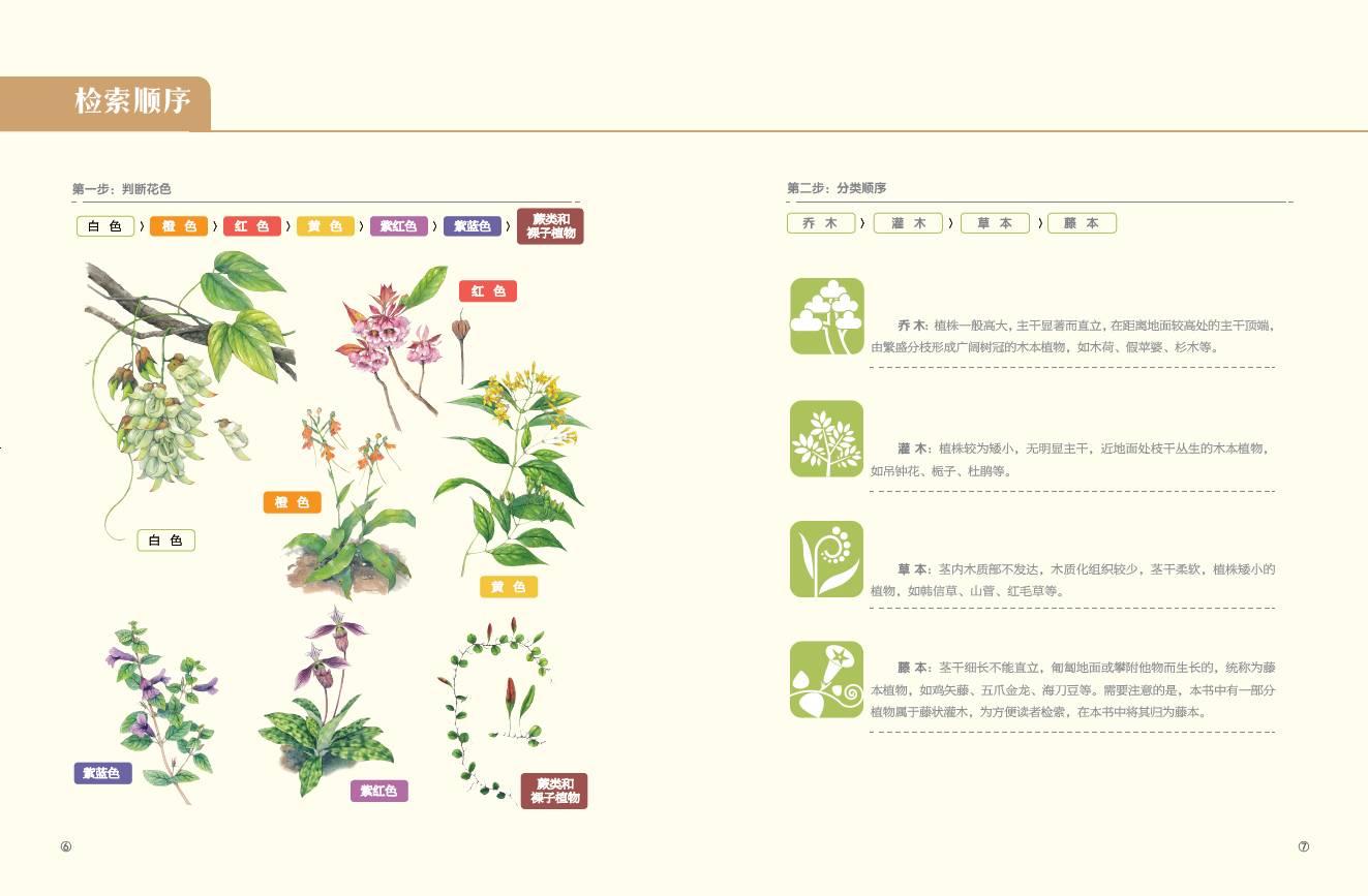 超便捷的检索系统:《草木深圳》图书充分照顾到了普通读者的阅读习惯,以花色为一级分类,以乔灌草藤为二级分类,以不同的色块和图标区分,让读者最快时间检索到想要了解的植物。附录中的科属花期索引表则以花期和科属为线索,让读者了解当月都有哪些植物会开花。书后还附有可撕下的折页,包含全书出现的所有植物小图和名称,方便读者出门随身携带。