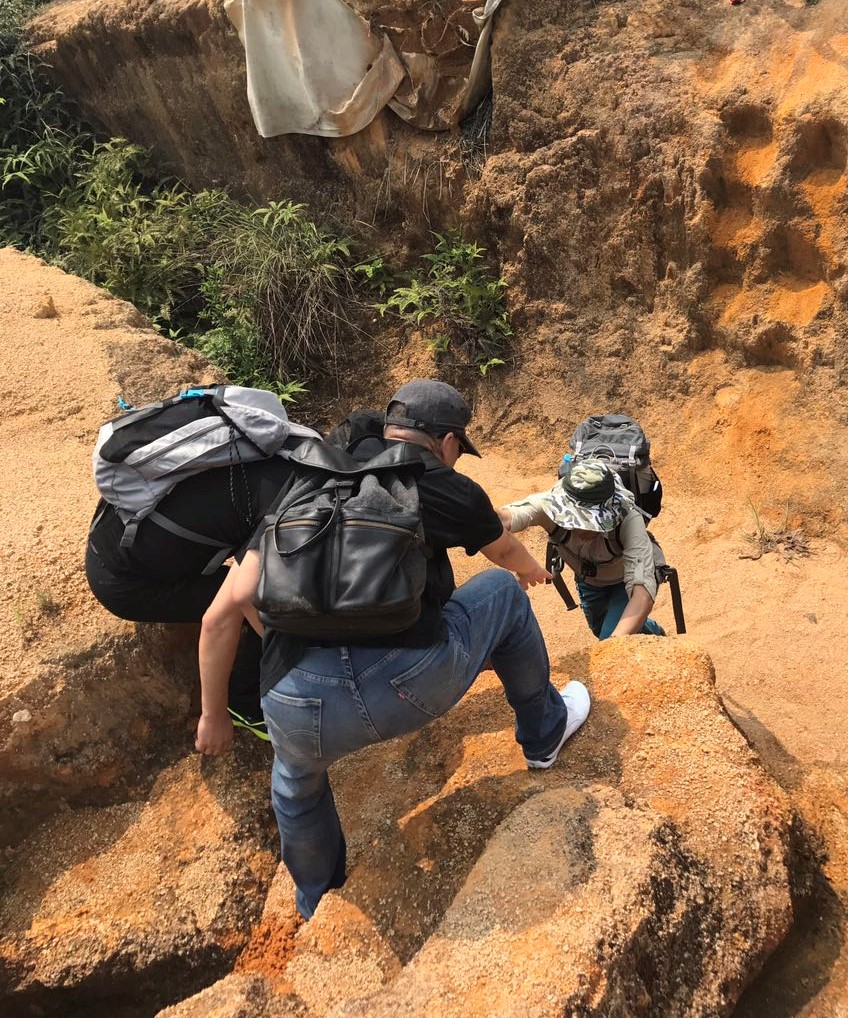 到达洞背村后,进行简单准备与大合影,开始沿山林小道行走,清新自然的感觉扑面而来。每当轻风走过,就会产生高低悠扬的风之回声。山谷两旁植被浓郁,藤蔓横生,野花遍地,偶尔伴有的几声鸟叫虫鸣,使此地更显静谧。小伙伴们跟着文化公司的同事学到很多花草树木、昆虫的知识。慢慢地,队伍也开始拉长,年轻人走在了前面,摄影师们流连于路边的每一个美好瞬间,收尾的同事确保不丢下每一个队员,好在领队们准备了对讲机,可以及时沟通,不会让队伍走错每一个岔路口。